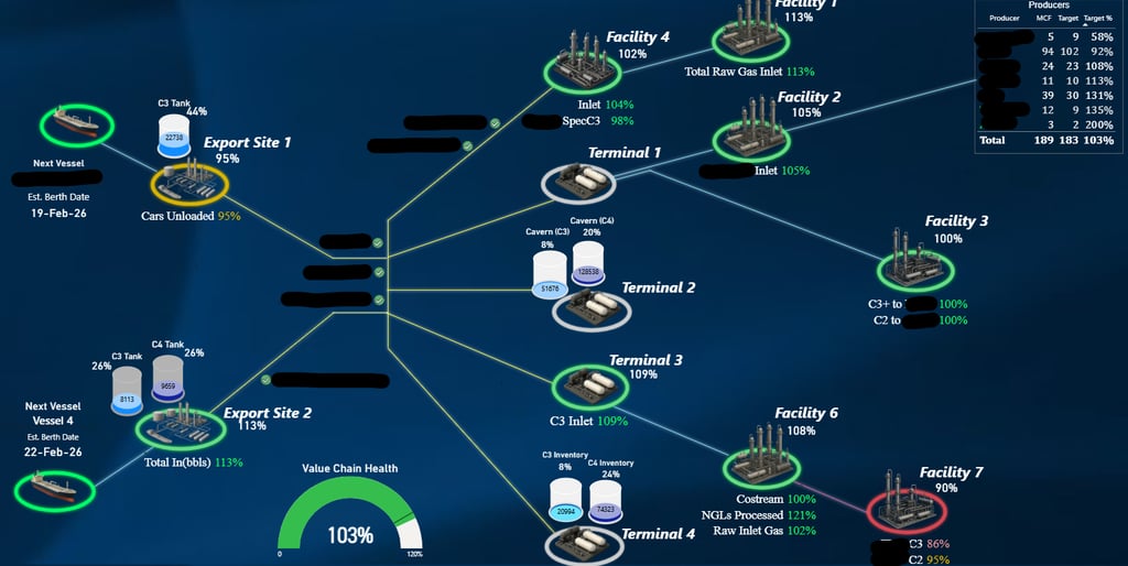 A Power BI report to display the Value Chain as well as a health metric based on Facility and Target Weights. Uses data from PI, Dataverse, Maximo, and Smartsheets.